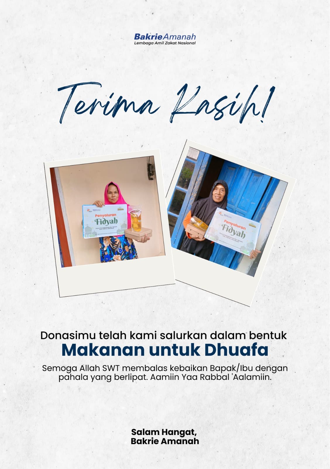 Pada bulan ramadan 1445H/2024 Alhamdulillah Bakrie Amanah telah melaksanakan berbagai rangkaian program sosialnya. Salahnya satunya adalah pendistribusian fidyah.