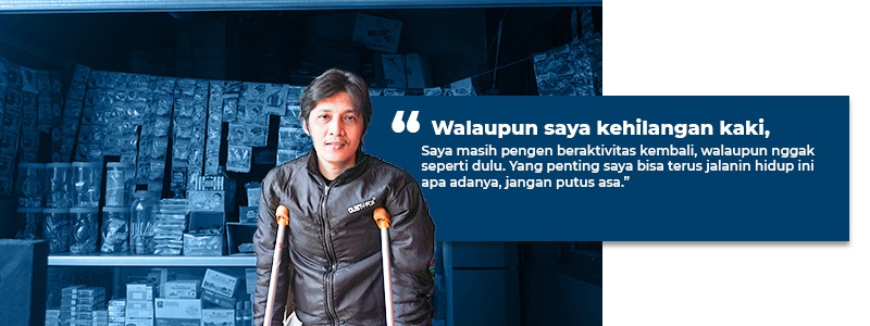 Kini memasuki usia 41 tahun, Pak Nanang Kurnia tetap berusaha tegar menjalani hari-harinya meski harus kehilangan satu kakinya akibat komplikasi diabetes yang dideritanya sejak muda. Bagi Pak Nanang, keputusan untuk amputasi bukanlah hal mudah, tapi justru ia sendiri yang memutuskan.